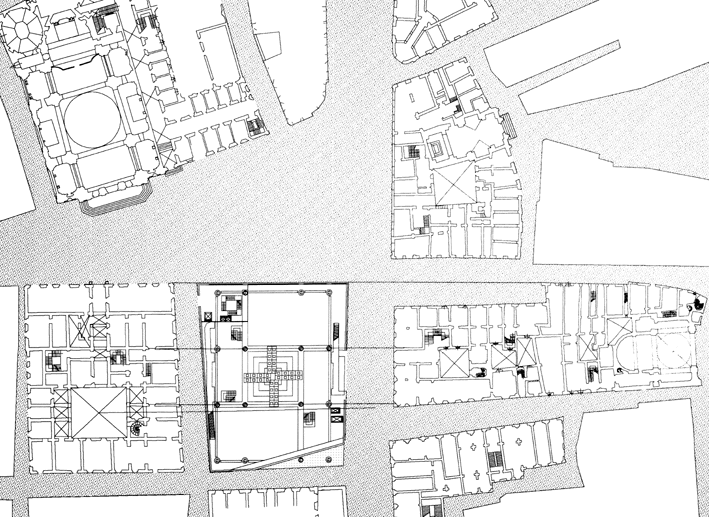 planimetria, assonometria, prospettive dall'Arenula e dai Giubbonari