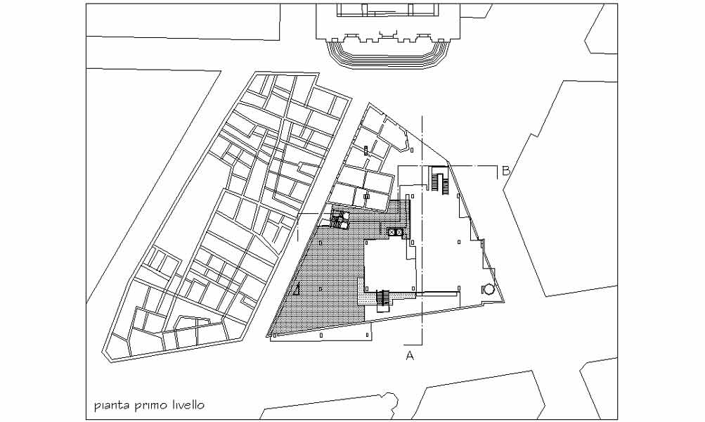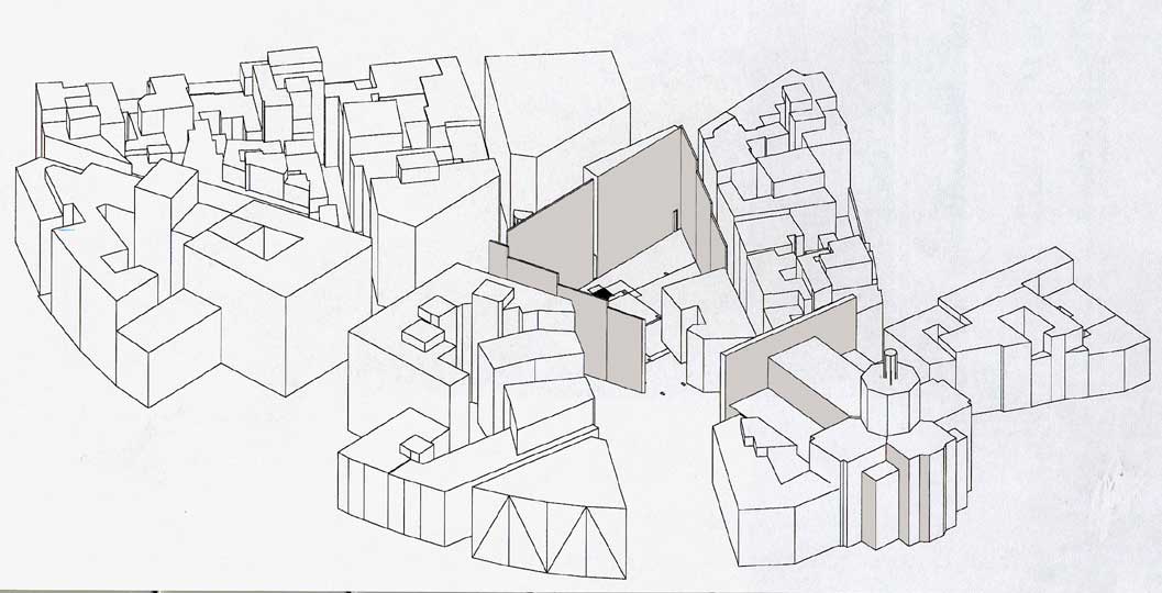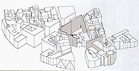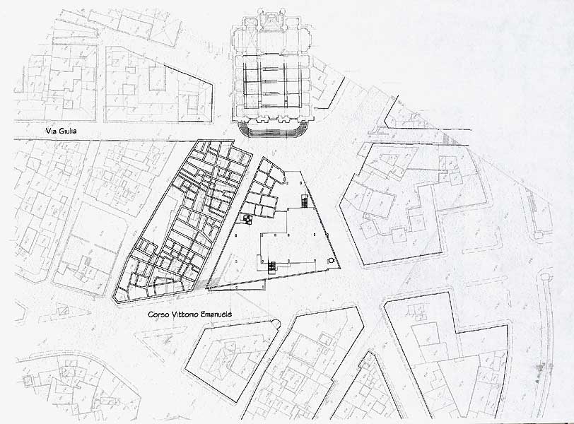 Francesca Caroli Architettura e recupero del tessuto edilizio: Roma / Progetto di struttura espositiva a via Giulia Studi per una tesi di laurea _ Roma 2001 |